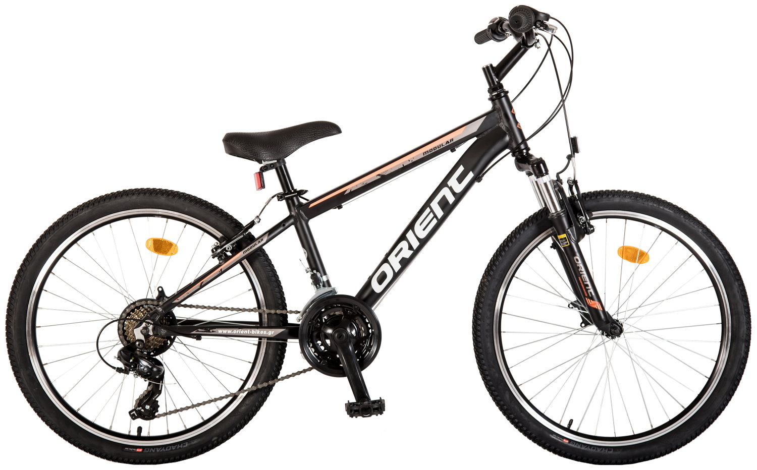 Διαθέτει 21 ταχύτητες Shimano, τροχούς ενισχυμένους αλουμινίου και ανάρτηση εμπρός.